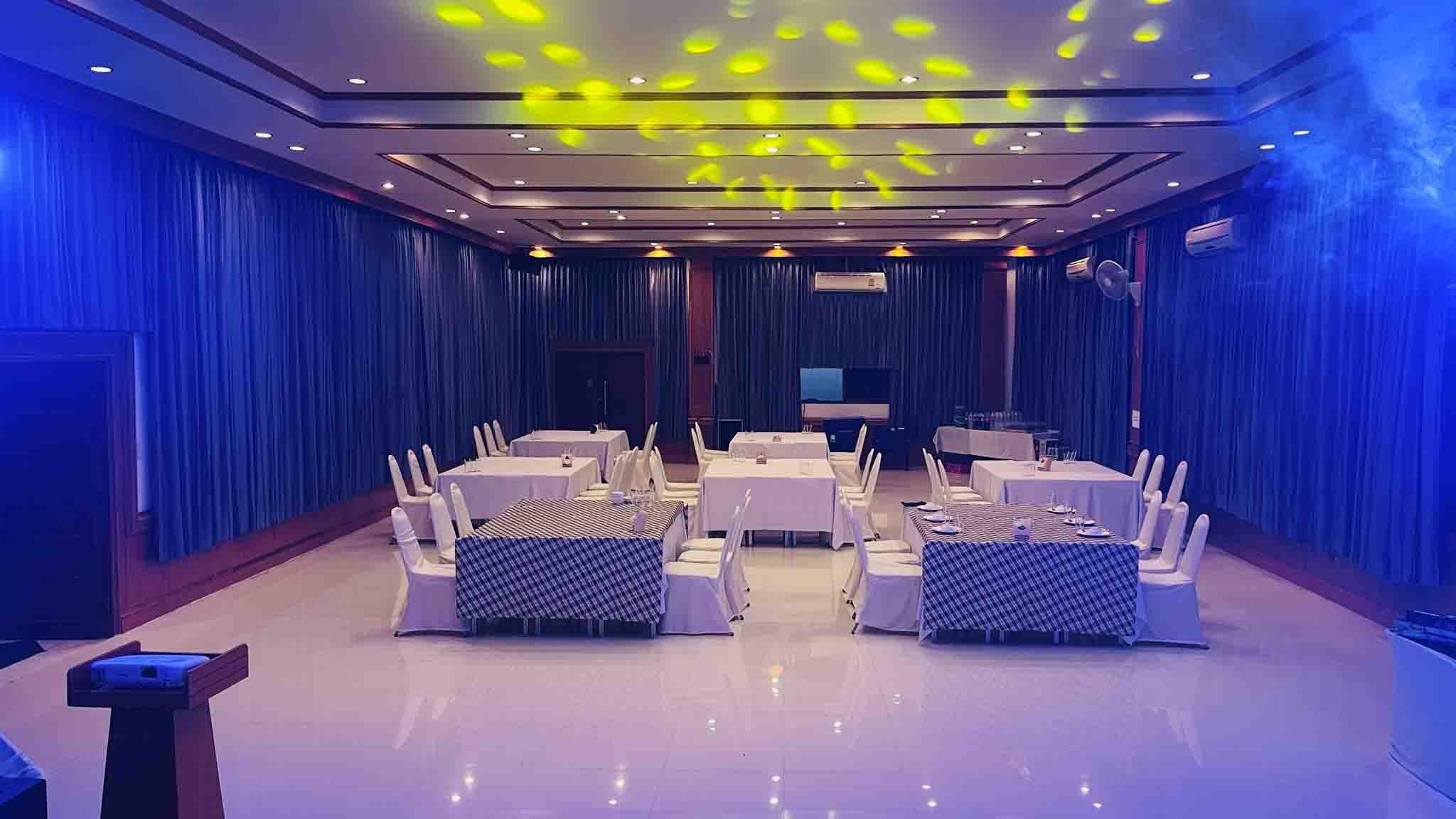 ห้องสัมมนาขนาด 12 x 25 เมตร สามารถรองรับผู้เข้าร่วมสัมมนาได้ถึง 150 ที่ โดยสามารถจัดโต๊ะแบบ Class Room ได้ 100 ที่และแบบ Theater ได้ 150 ที่ ด้วยการตกแต่งด้วยไม้ ระบบเสียงที่ชัดเจนและโทนสีของผ้าม่านและเก้าอี้ภานในห้องห้องเป็นสีม่วงตัด กับความงามของสีไม้สักทองอย่างลงตัว จึงห้องสัมมนาที่สวยงามและลงตัวที่สุดในเขตอำเภอไทรโยคและลุ่มน้ำแควน้อย อยากให้ทุกท่านได้มาสัมผัส ห้องสัมมนาขนาด 12 x 25 เมตร สามารถรองรับผู้เข้าร่วมสัมมนาได้ถึง 150 ที่ โดยสามารถจัดโต๊ะแบบ Class Room ได้ 100 ที่และแบบ Theater ได้ 150 ที่ ด้วยการตกแต่งด้วยไม้ ระบบเสียงที่ชัดเจนและโทนสีของผ้าม่านและเก้าอี้ภานในห้องห้องเป็นสีม่วงตัด กับความงามของสีไม้สักทองอย่างลงตัว จึงห้องสัมมนาที่สวยงามและลงตัวที่สุดในเขตอำเภอไทรโยคและลุ่มน้ำแควน้อย อยากให้ทุกท่านได้มามาสัมผัส